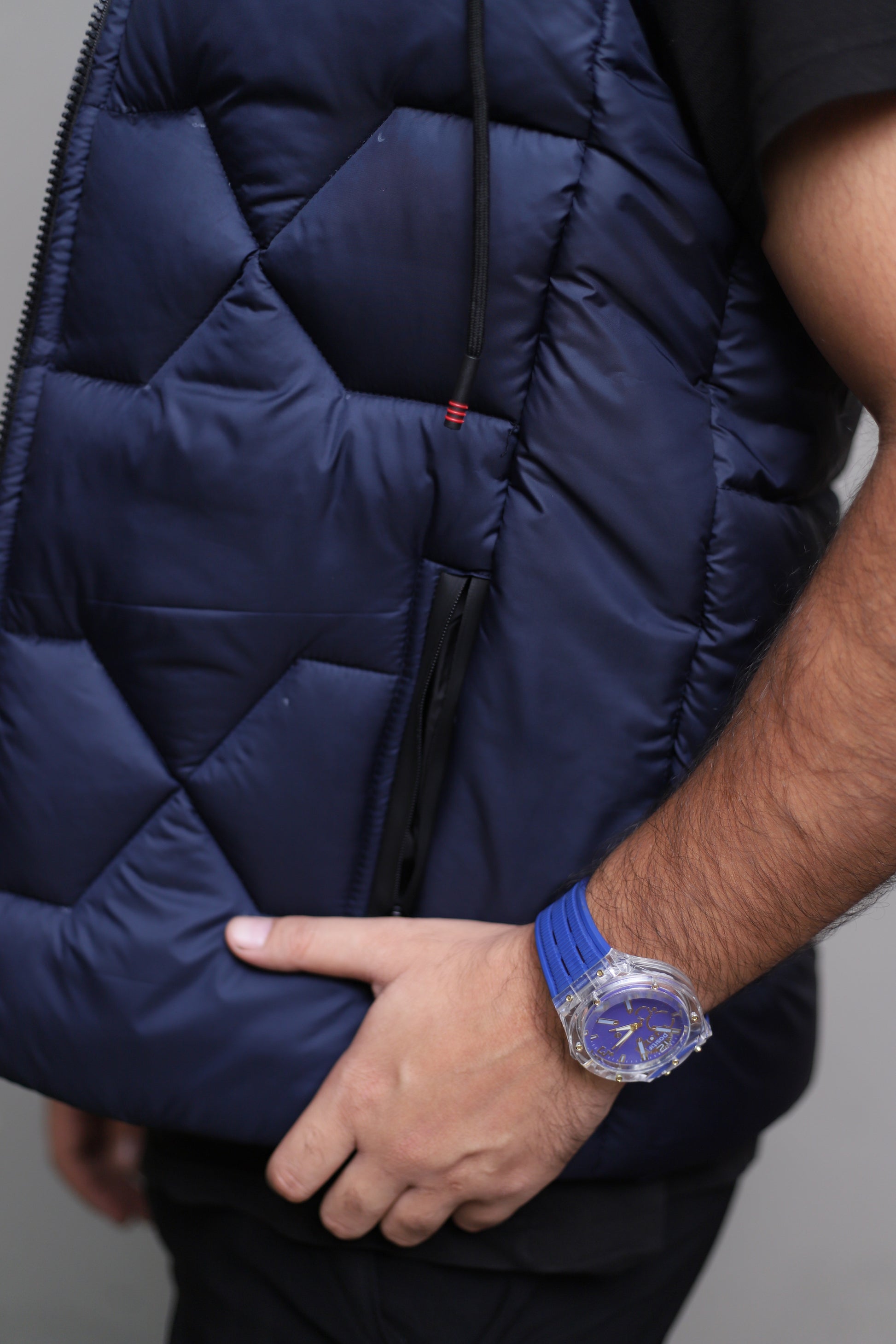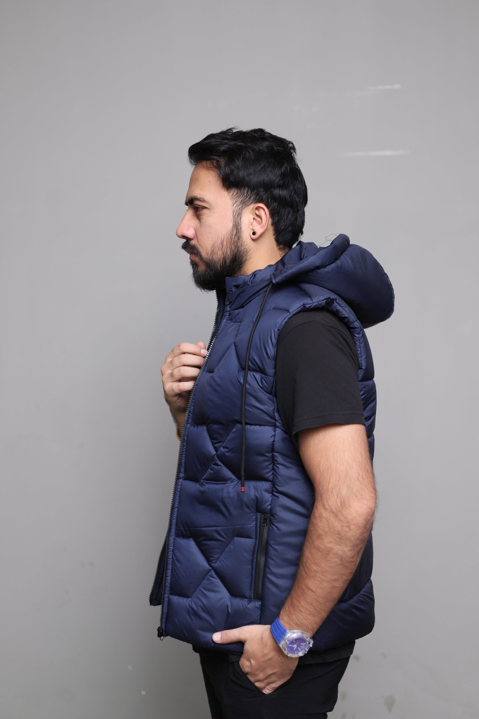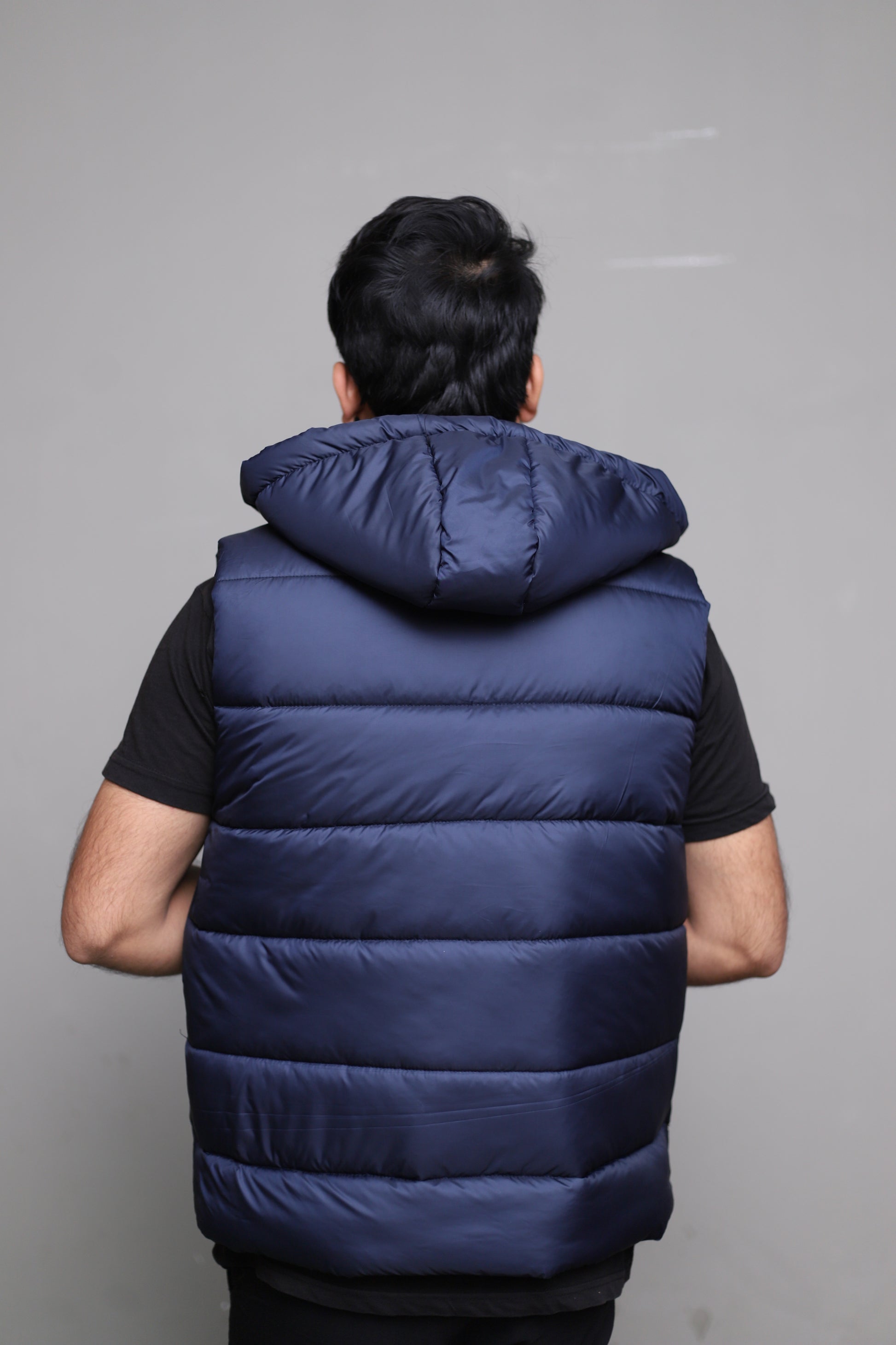 Imported blue sleeveless puffer jacket